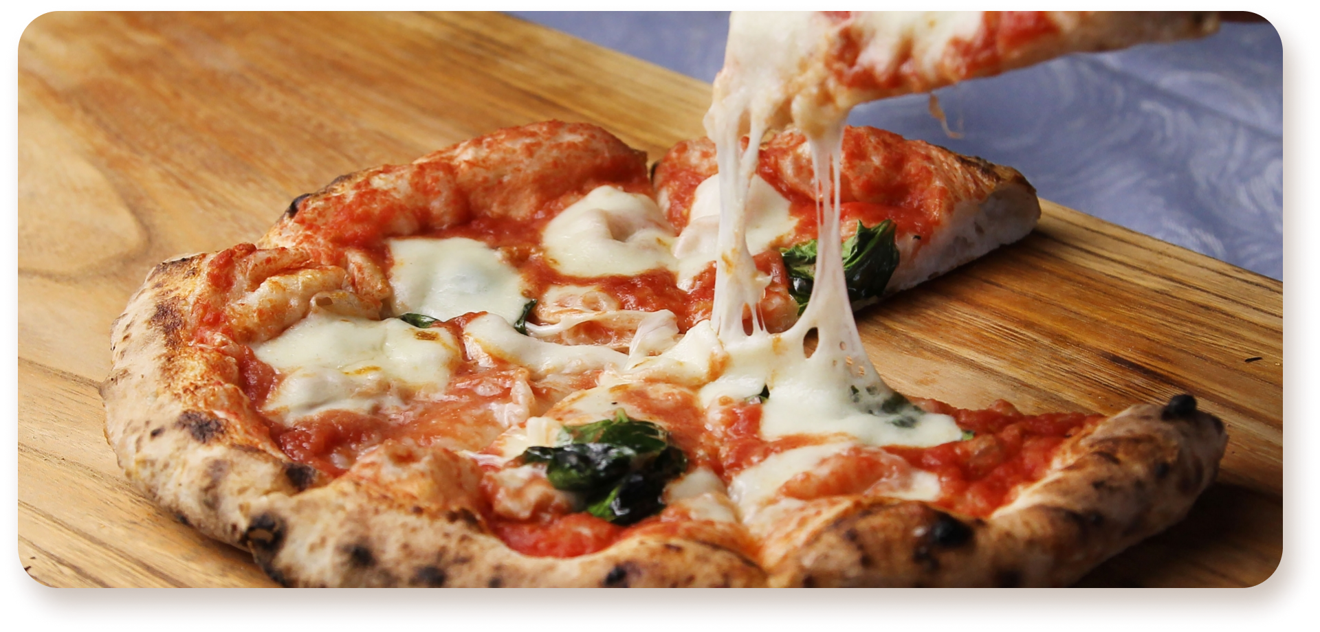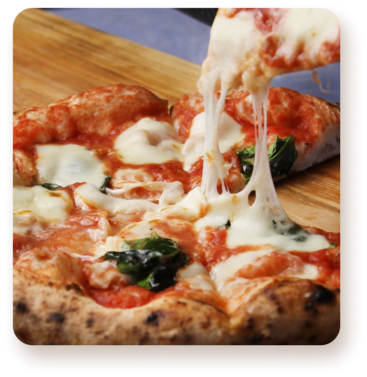 ふわふわ、もちもち、いわゆるナポリ風の生地は他のピザ屋さんにお任せします。こだわりの食財を最大限に堪能できるように、サクッと歯切れの良い【謙虚な生地】がグラッチェピザの特徴です。全粒粉を使用しているので、通常のピザよりも食物繊維が豊富で糖質も低く抑えられています。沢山の野菜をヘルシーな生地で食べるグラッチェピザは食べた後も罪悪感なんて残りません!