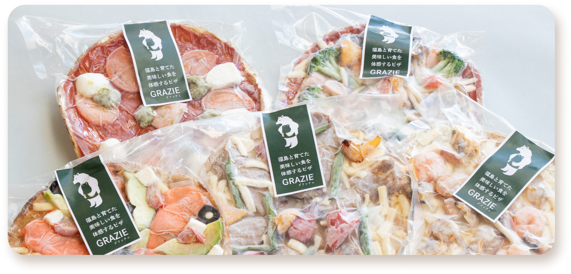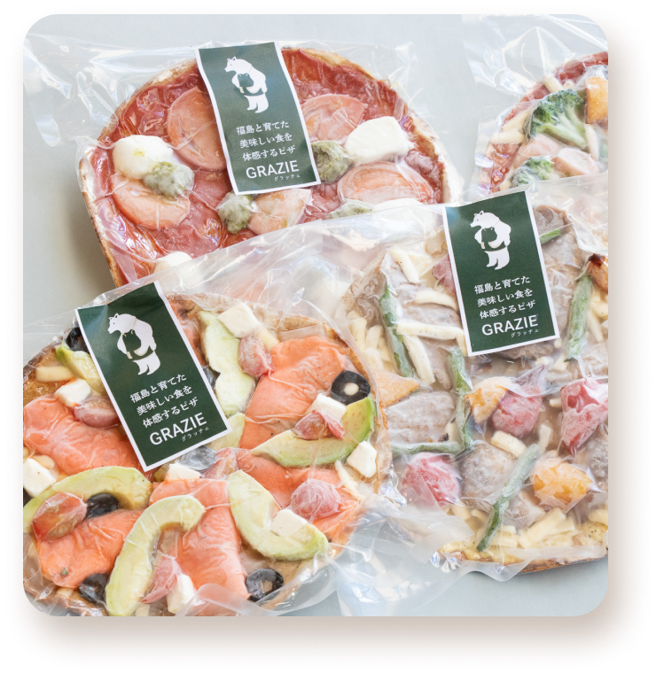 3.11東日本大震災。あの日以降、放射線の風評被害により世界中から厳しい安全基準を設けられたのが福島県の生産者さんたちです。育てては捨て、育てては捨て、農業を諦めた方々もいました。そんな中、食べ手の「美味しい!」の一言のために、暑い日も寒い日も絶えず作物に愛情を注ぎ続ける生産者さんがいます。そのこだわりや本物の技術をピザに乗せて届けています。旬の食財を、生産者さんの想いと一緒にお召し上がりください。