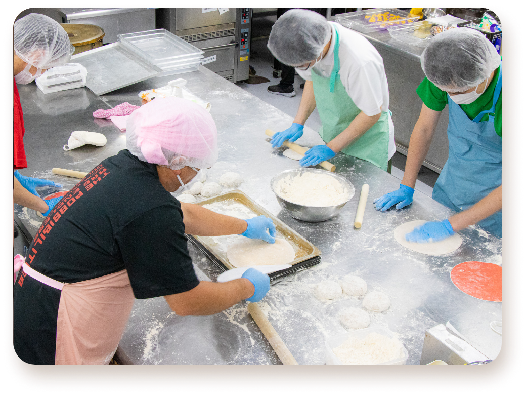 グラッチェのピザ生地は実は全て手作りです。就労支援事業所からふるの皆様が1つ1つ丁寧にこねて伸ばしてくれています。先日、普段自分たちが作っているピザを味わってもらえるように料理長がお店に招待していました。