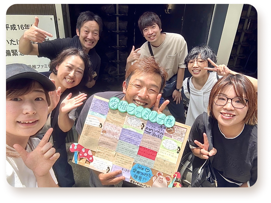 農家さんあってのグラッチェです。農家さんの気持ちや野菜の特徴を知るためにスタッフみんなで農業体験に出かけています。また、農家さんは普段お客様からの「美味しい!」の声を直接聞くことができないのでメッセージカードを書いていただき、アルバムにしてプレゼントをしています。