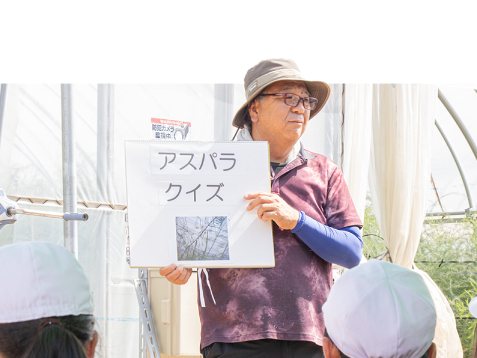 親方の愛称でファンが多い鈴木さん。鮮度を大切にした極太アスパラはみずみずしく、噛んだ瞬間にジューシーな甘みを感じます。いつも地域を大切に、学校や飲食店さんと連携し、子どもたち一緒に収穫体験や食育授業なども精力的に取り組んでいます。